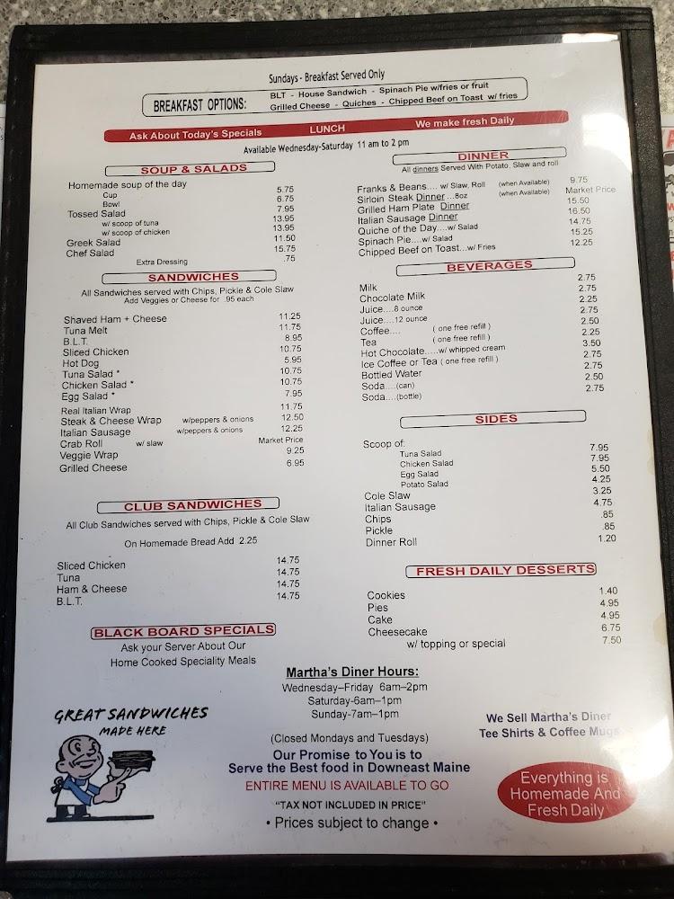 Overall, the menu feels warm and inviting, reminiscent of classic diners. Diners can expect hearty, homestyle meals prepared with love, making Martha's a must-visit for local and visiting food lovers.
